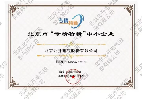 熱烈祝賀北開電氣順利通過“北京市專精特新中小企業(yè)”認定